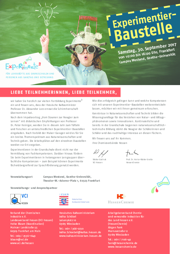 Baustellenbeschreibungen zur Veranstaltung Experimente 3